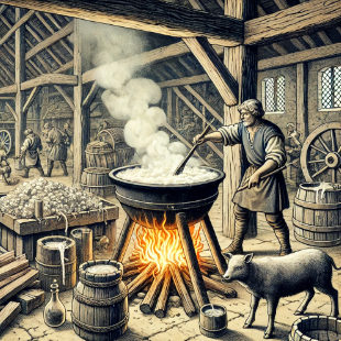 얘기인즉슨, 로마의 사포(sapo)라는 산에서 동물들(주로 소, 양)을 신에게 제사를 드리는 의식들이 많이 치러졌는데, 통나무로 단을 쌓고 그 위에 동물을 태워서 제사를 드렸다고 생각하는 것이지요. 이러한 제사 의식의 결과로 남는 것은 통나무의 재로 쌓인 토양과 동물이 태워지고 같이 어우러진 기름들이겠죠. 비누를 만드는 분들이라면 동물의 기름(유지)과 식물의 재(알칼리)가 적당한 조건이 맞다면 비누의 역할을 할 수 있다는 유추가 가능합니다.